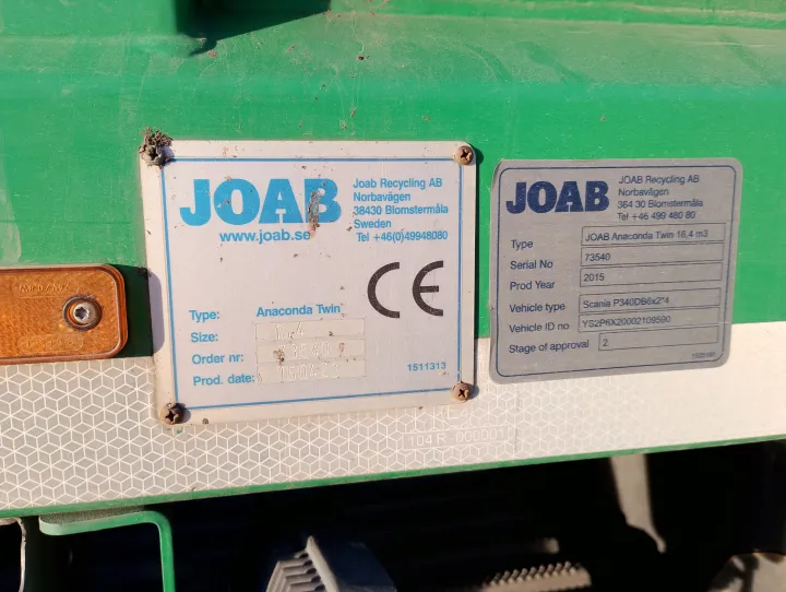 Scania P340 CNG 2-kammer Joab Anconda