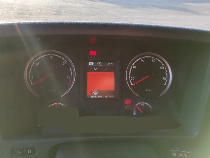 Bilen har hatt en feilmelding om gasslekasje fra den var ny. Bilen er feilsøkt hos Scania uten at det har blitt funnet noe feil. Bil og påbygg fremstår ellers i god stand.