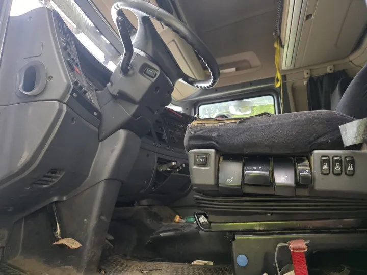 Eier opplyser at det er feil på en sensor knyttet til eksossystemet. Videre opplyses det at splittfunksjonen i girkassen hopper ut i høyserie ved giring, og at kjøretøyet derfor i dag benyttes i lavserie