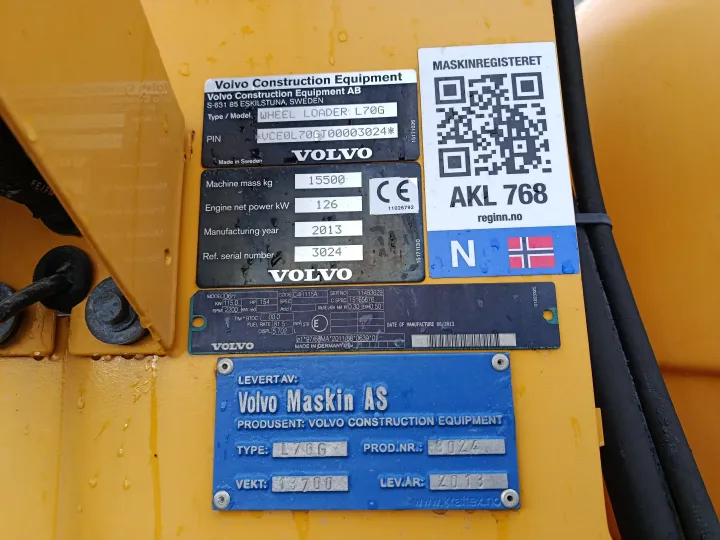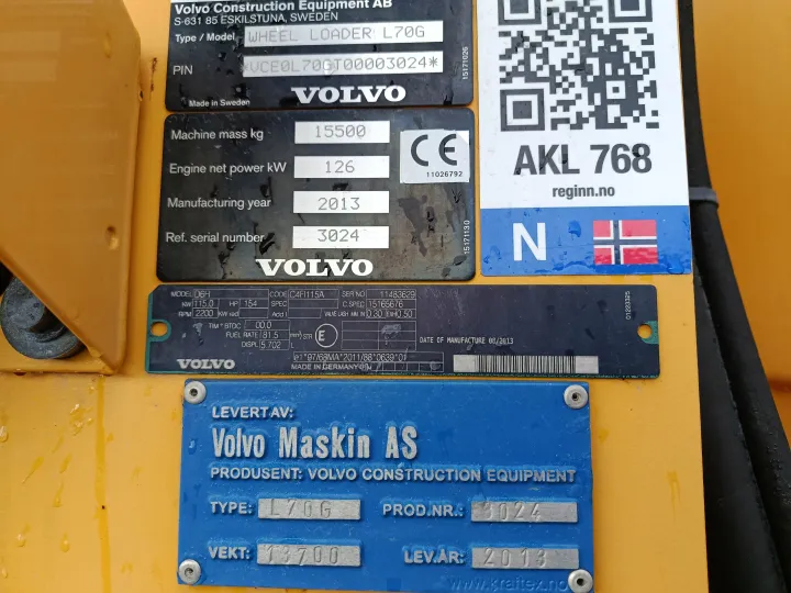 Volvo L70G som er leveringsklar