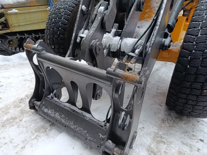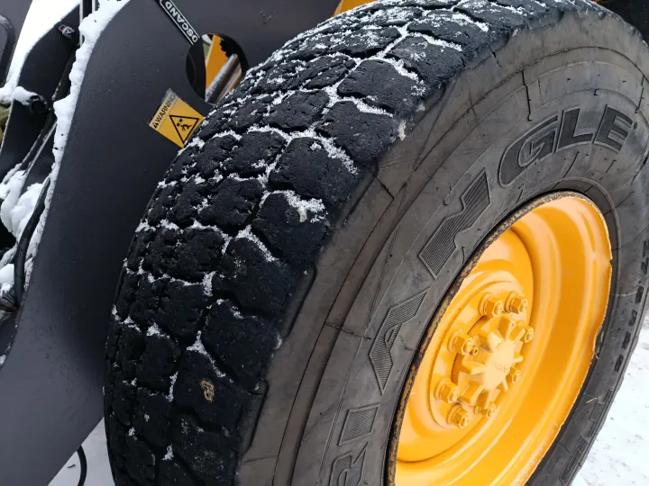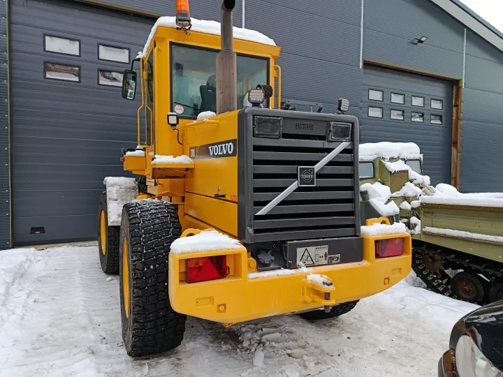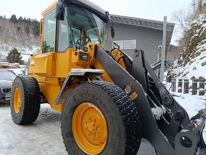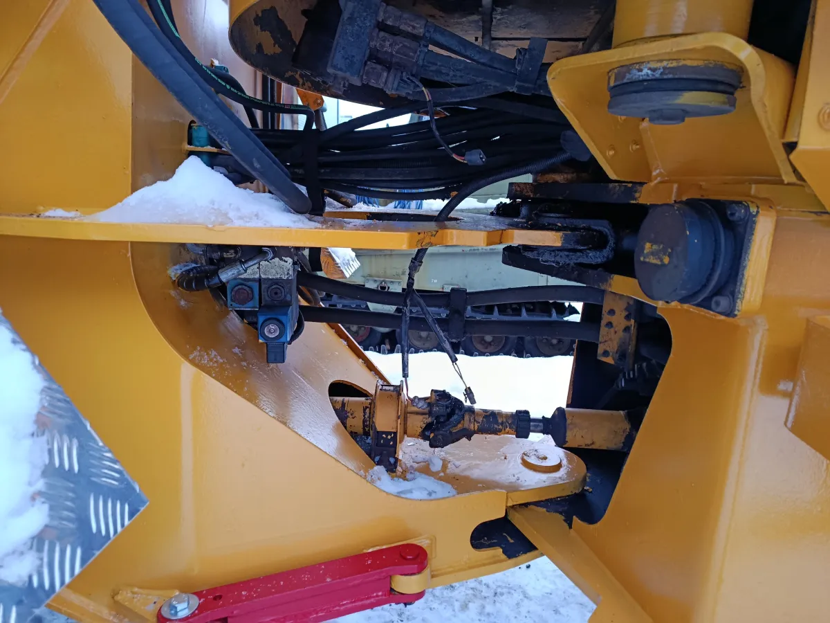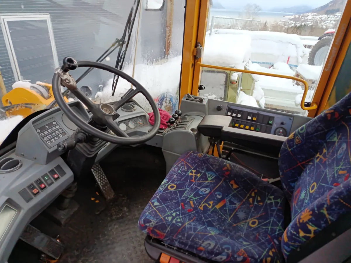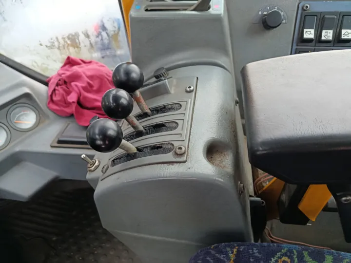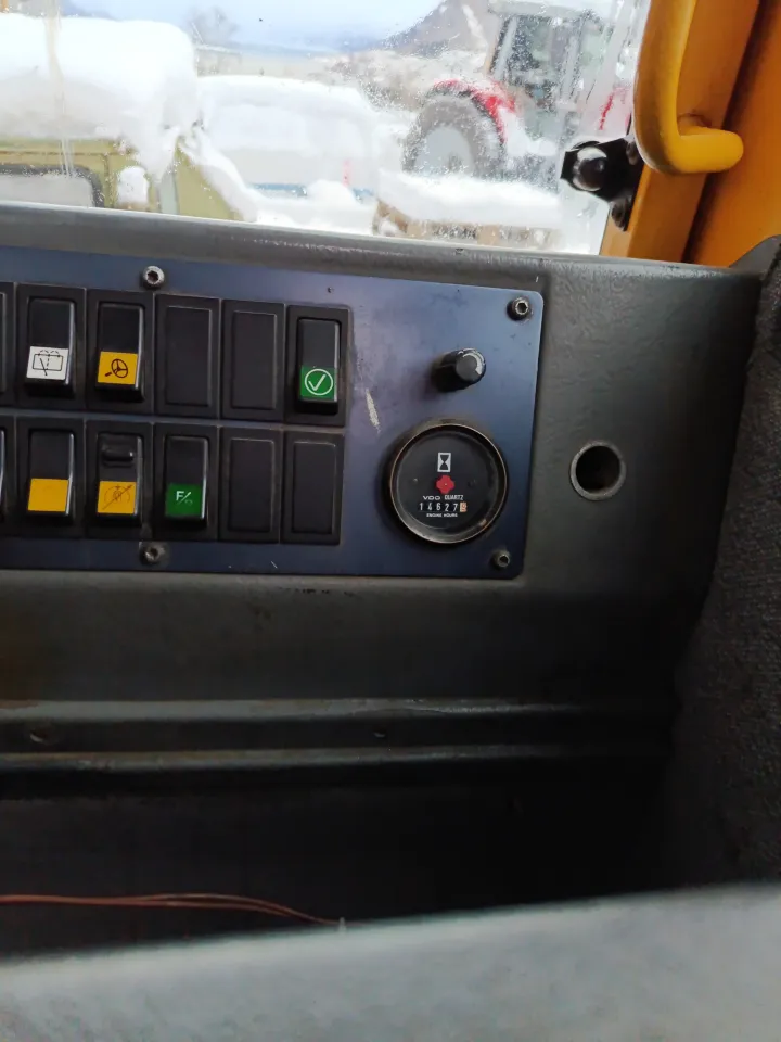 Maskinen har vært brukt ved et bilopphuggeri og har hovedsakelig gått i lett kjøring. Den leveres uten skuffe.