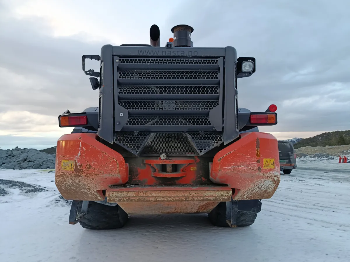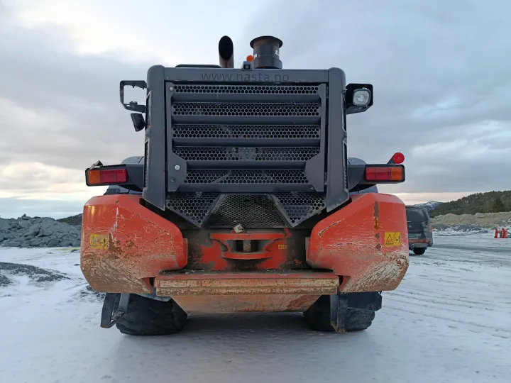 Maskinen har vært tett oppfulgt med serviceavtale hos Nasta, med 500-timers serviceintervall. Den fremstår i god stand og uten feilmeldinger.