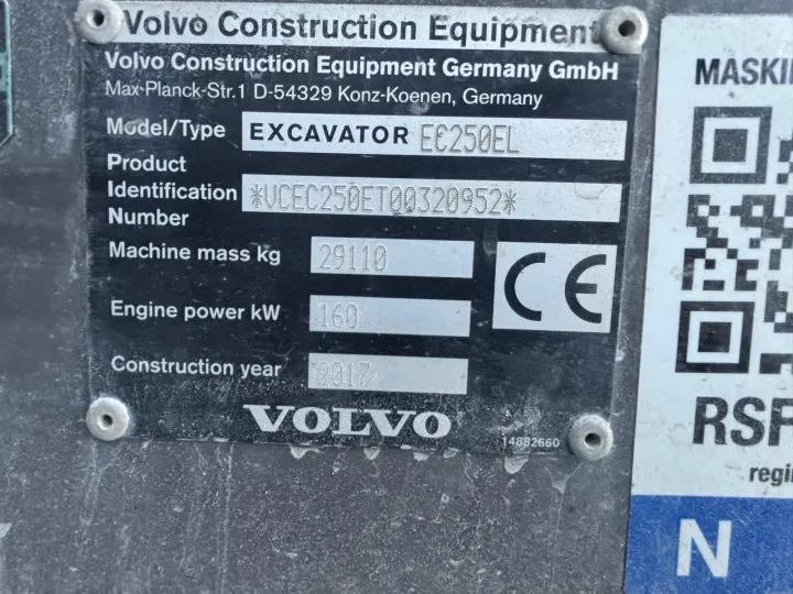 Volvo EC250EL gravemaskin som er leveringsklar.