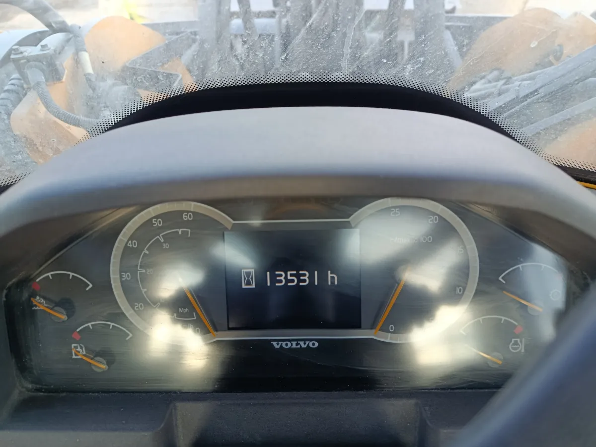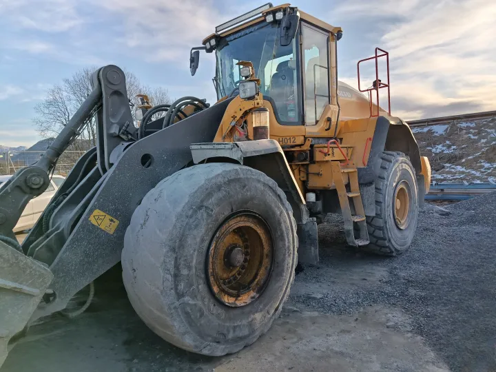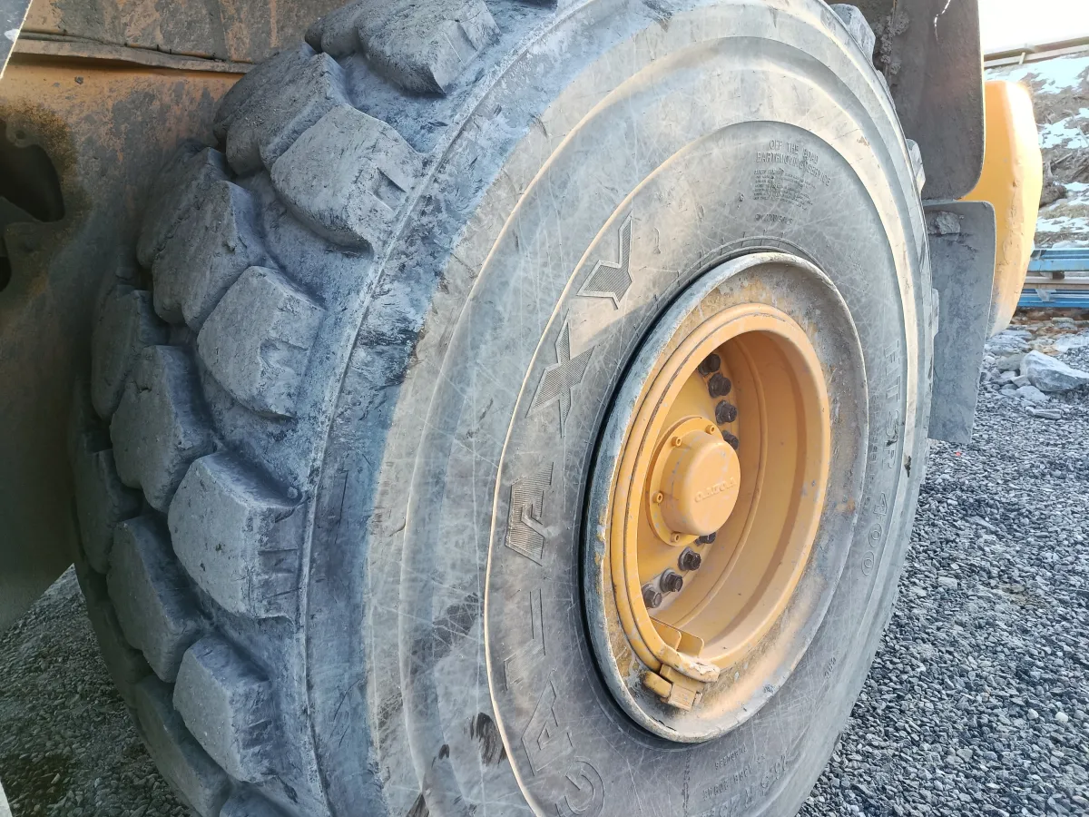 Maskinen er fulgt opp med vedlikehold hos Volvo og fremstår i god stand. Fremdekkene er utslitte.