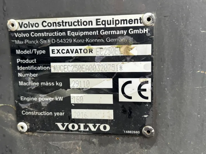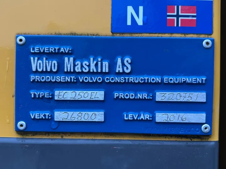 Volvo EC250eL gravemaskin som er leveringsklar.
